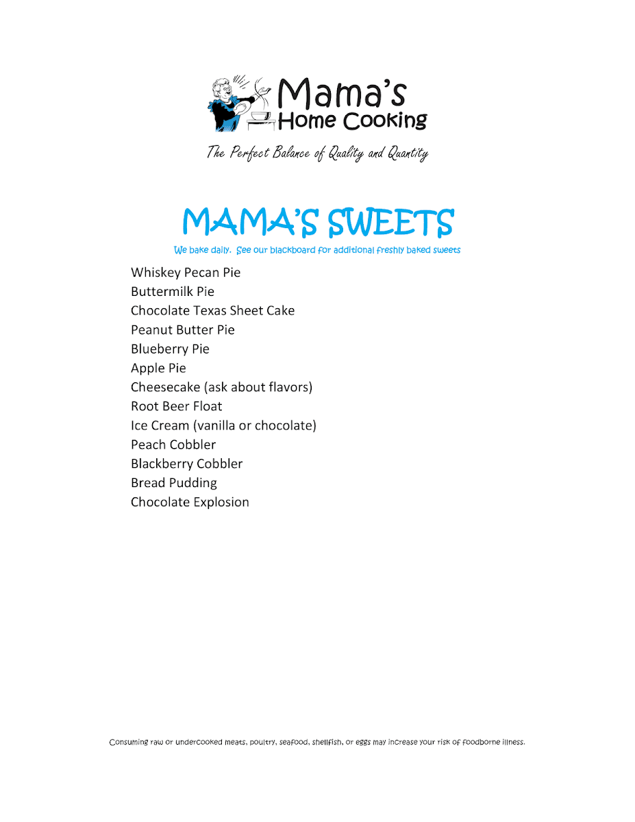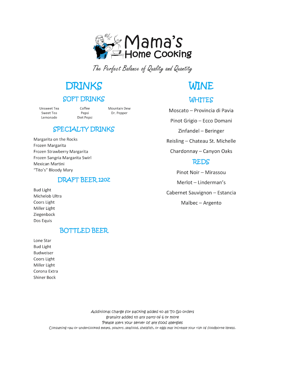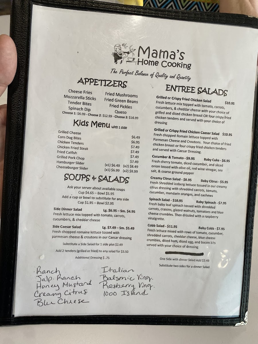 At Mama's Home Cooking Menu, you’ll find a warm and inviting selection of home-cooked comfort food, perfect for any occasion. Whether you're craving classic Southern dishes or hearty family favorites, this menu has something for everyone. From savory, tender fried chicken to creamy mashed potatoes and rich gravy, every bite brings a sense of nostalgia and satisfaction. The daily specials offer even more variety, with rotating options that ensure something new to try each time you visit. Add a side of freshly baked cornbread, and you’ve got a meal that feels just like home. Whether you’re stopping by for a quick bite or enjoying a leisurely meal with loved ones, Mama’s offers the kind of food that makes you feel cared for with every bite.